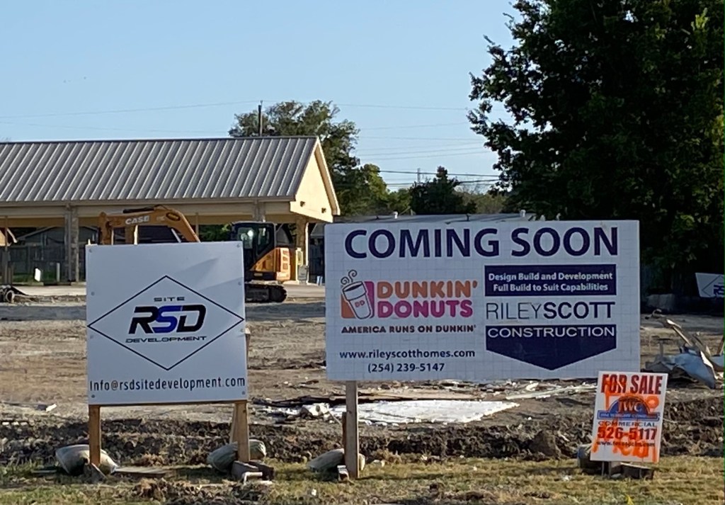 A “coming soon” sign is up at 2410 East Business 190 in Copperas Cove, formerly the site of Heart of Texas Federal Credit Union, announcing the coming construction of a new Dunkin’ Donuts location. According to the Copperas Cove Leader Press, the location will also include a Baskin’ Robbins.