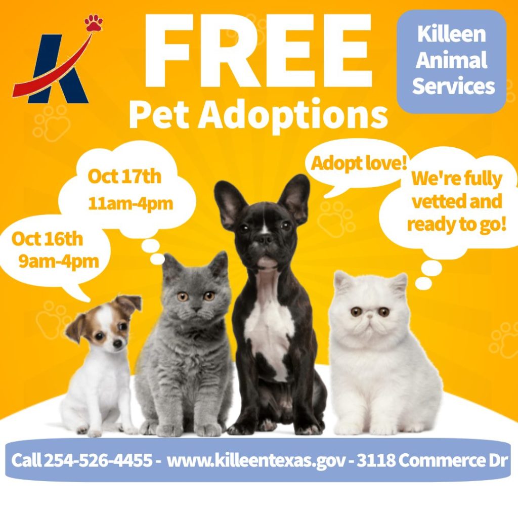 If you can’t adopt, the city asks that you look into the opportunity to foster or volunteer at the shelter. For more info, visit killeentexas.gov/233/Animal-Services