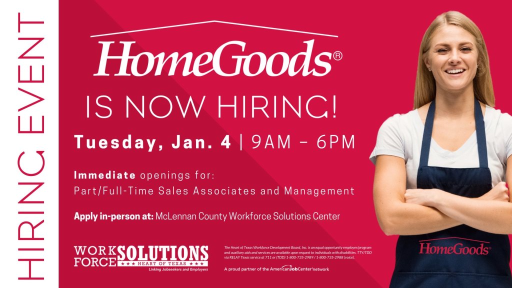 HomeGoods is coming soon to Waco’s Central Texas Marketplace at 2400 W. Loop 340. HomeGoods is a national home and decor retailer from the same corporate group as TJ Maxx, Marshall’s, and Home Sense.