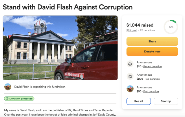Support continues to build for David Flash, publisher of Big Bend Times and Texas Reporter, following his politically charged arrest in Jeff Davis County. Flash, a longtime critic of county officials, contends that the charges […]